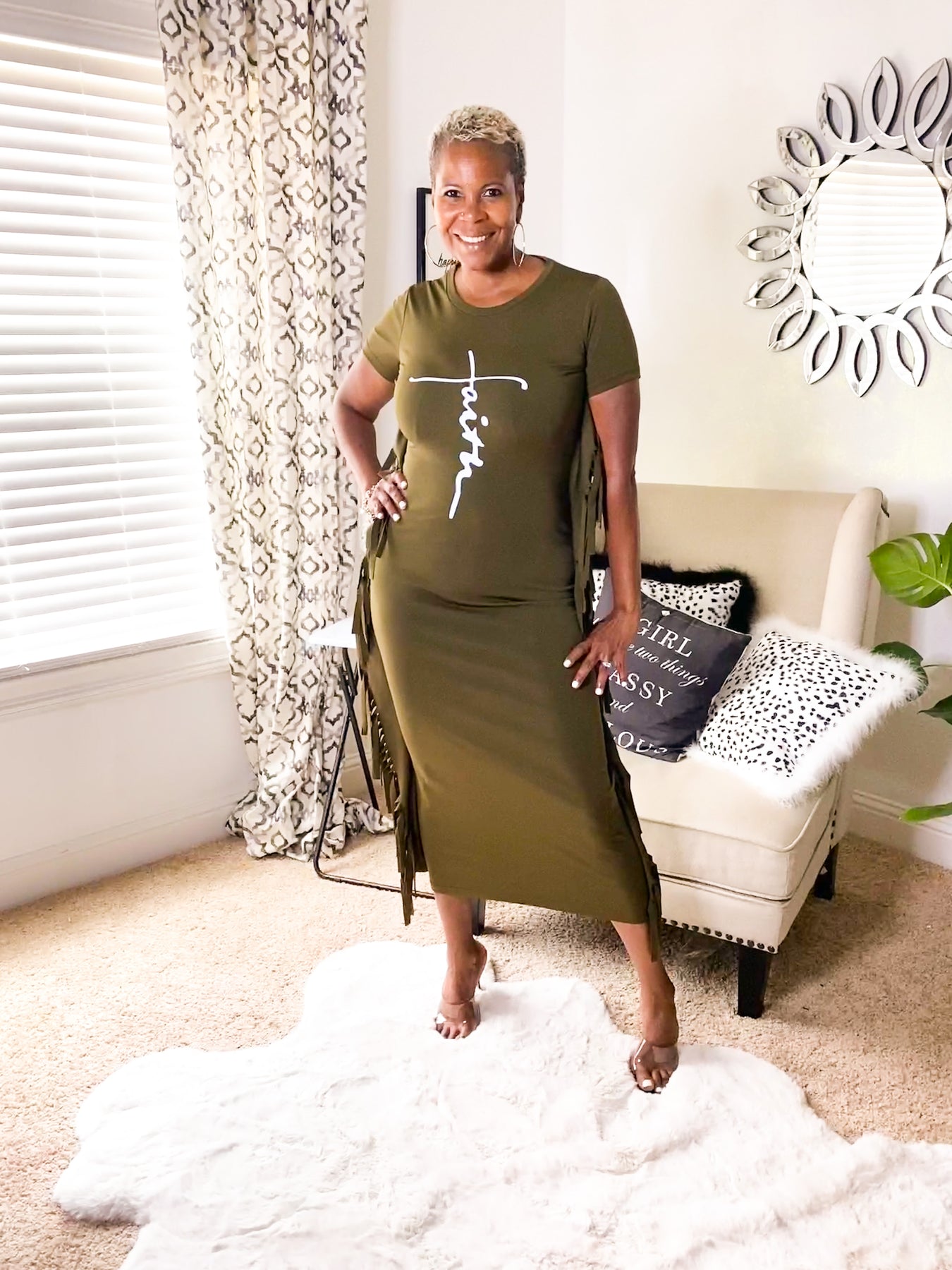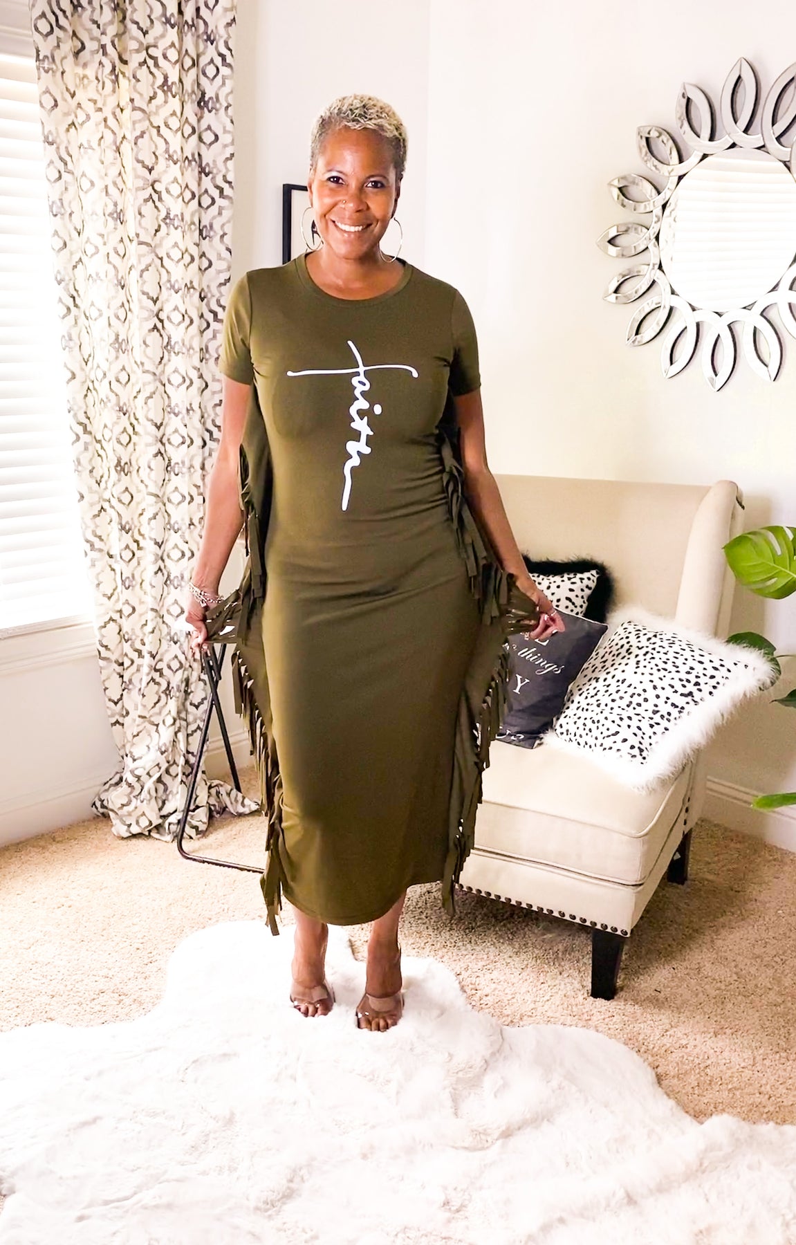 Short Sleeve Tassel Side Faith Letter Midi Maxi Dress