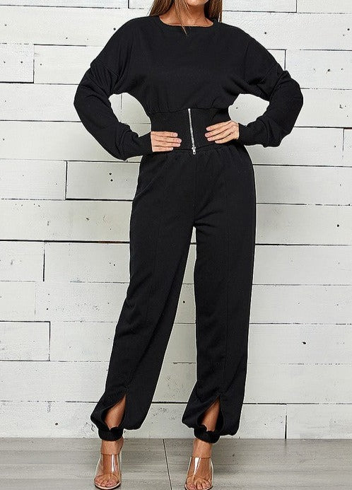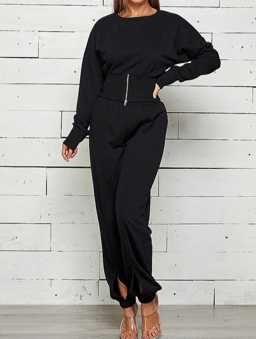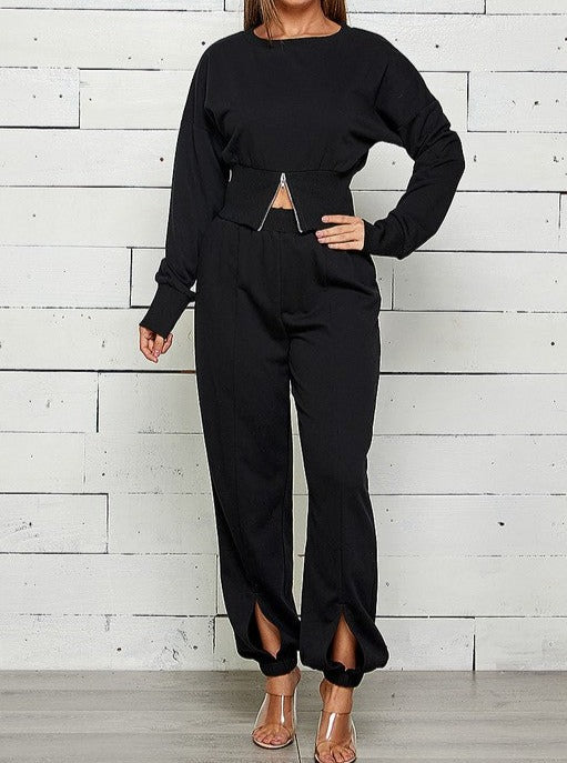 ZIP FRONT WITH SLIT JOGGER SWEATPANTS SET