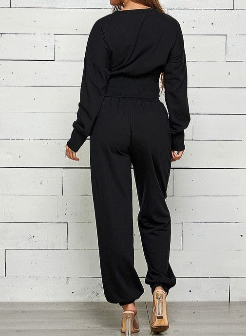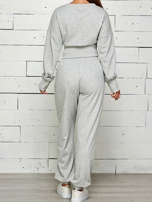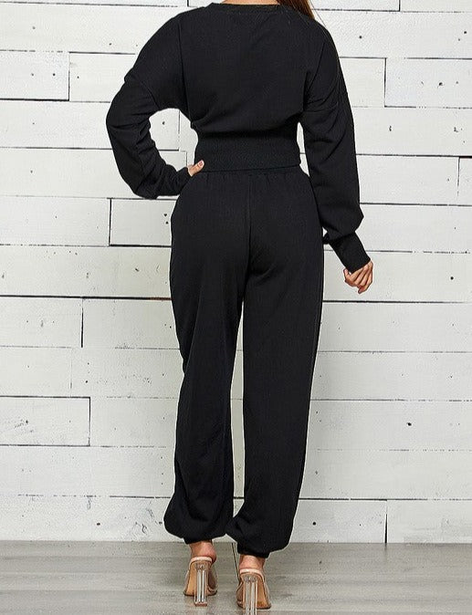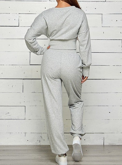 FRENCH TERRY CROP LONGSLEEVE SWEATSHIRT ZIP FRONT WITH SLIT JOGGER SWEATPANTS SET 85% COTTON 15% POLYESTER